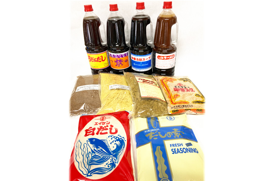うどんやそばのだし、めんつゆ、中華スープなどを濃縮タイプでご用意しています。希釈するだけで、すぐに手軽に本格的なだしの味わいを再現できます。